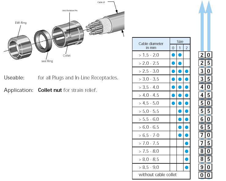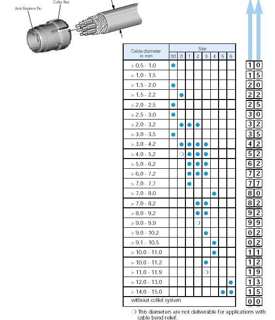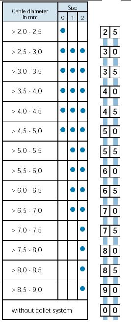 - возможно использование кабеля диаметром от 2,0 до 11,5 мм в зависимости от типоразмера