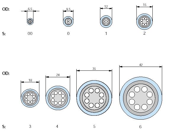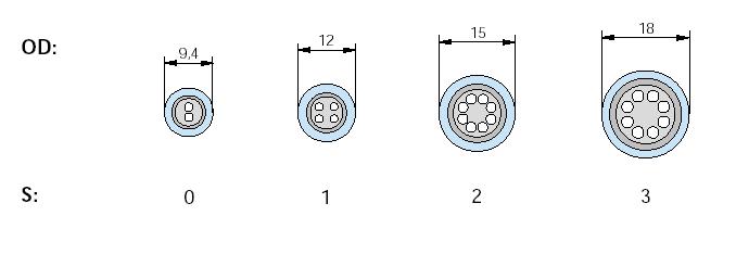 - 5 типоразмеров (внешний диаметр соединителя от 9,4 мм до 18 мм)